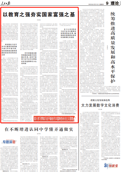 凝聚全党全社会建设教育强国的合力。建设教育强国是全党全社会的共同任务。要坚决贯彻好、落实好习近平总书记重要讲话精神,全面、系统、整体落实党对教育工作的领导,不断完善党委统一领导、党政齐抓共管、部门各负其责的教育领导体制。推动健全优先发展教育事业的体制机制,推动各级党委和政府在经济社会发展规划上优先安排教育发展、在财政资金上优先保障教育投入、在公共资源配置上优先满足教育发展需要。积极构建学校、家庭、社会协同育人格局,完善学校积极主导、家庭主动尽责、社会有效支持的工作机制,切实增强工作合力,共同办好教育强国事业,为早日实现教育强国目标而共同努力。(本文刊发于《人民日报》2023年08月31日第09版)