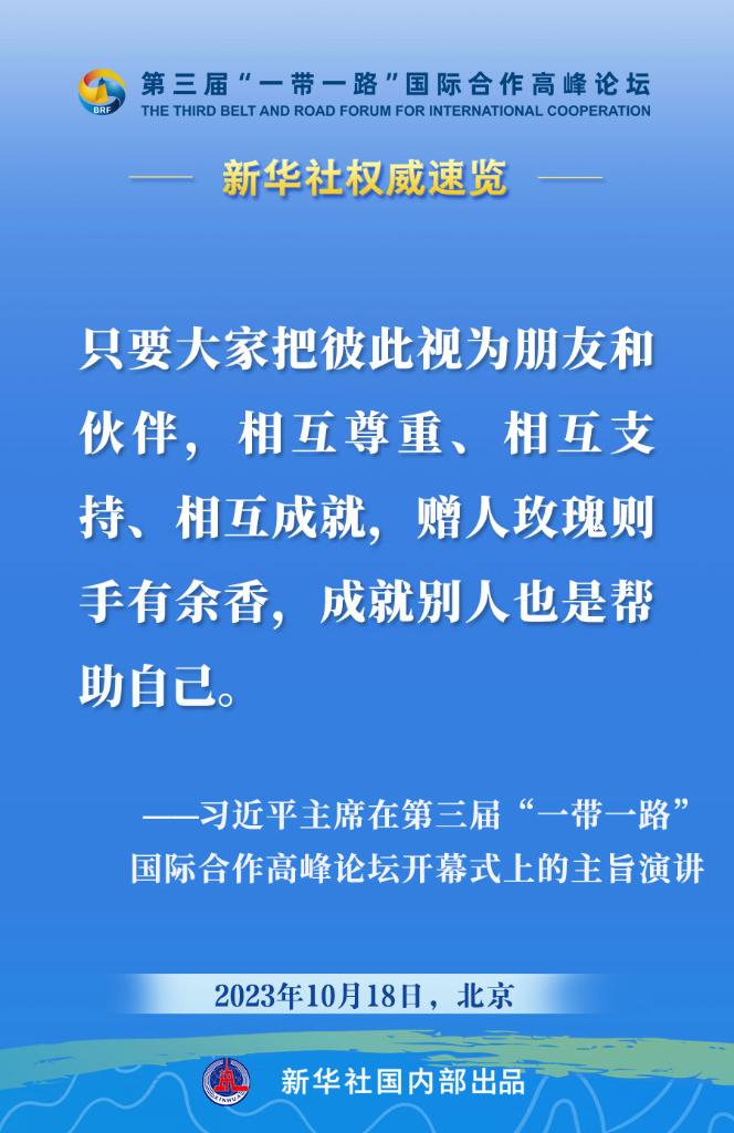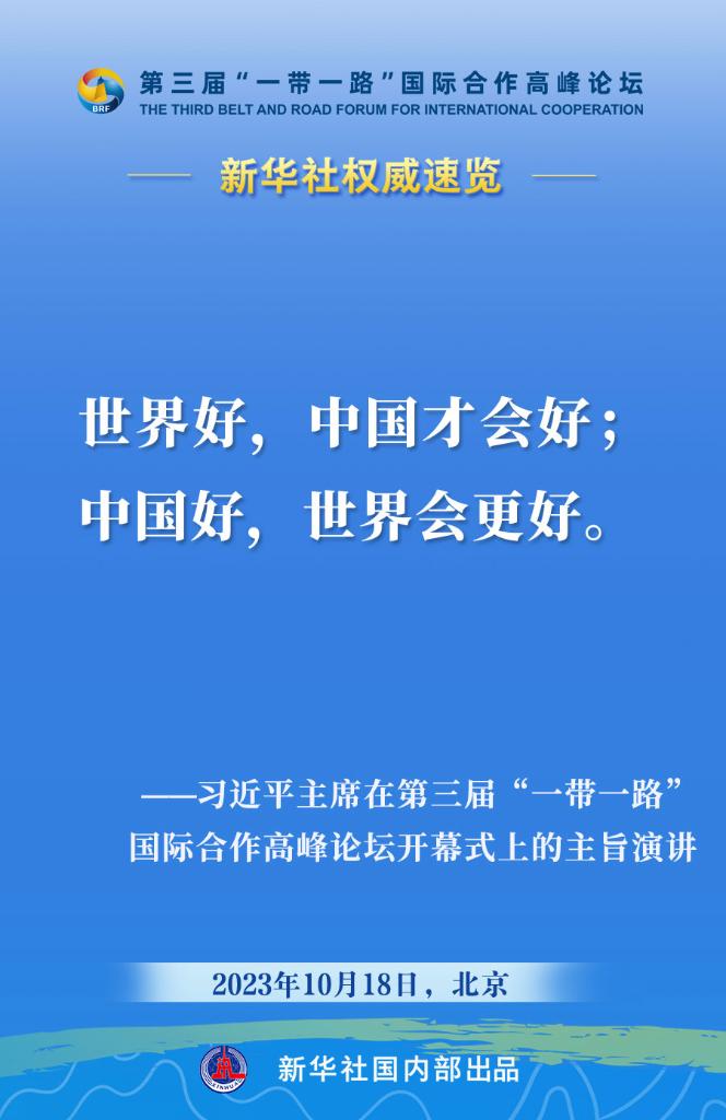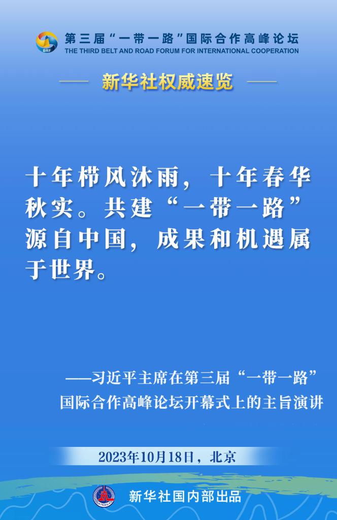 10月18日,国家主席习近平在第三届“一带一路”国际合作高峰论坛开幕式上发表主旨演讲。一起来看金句。