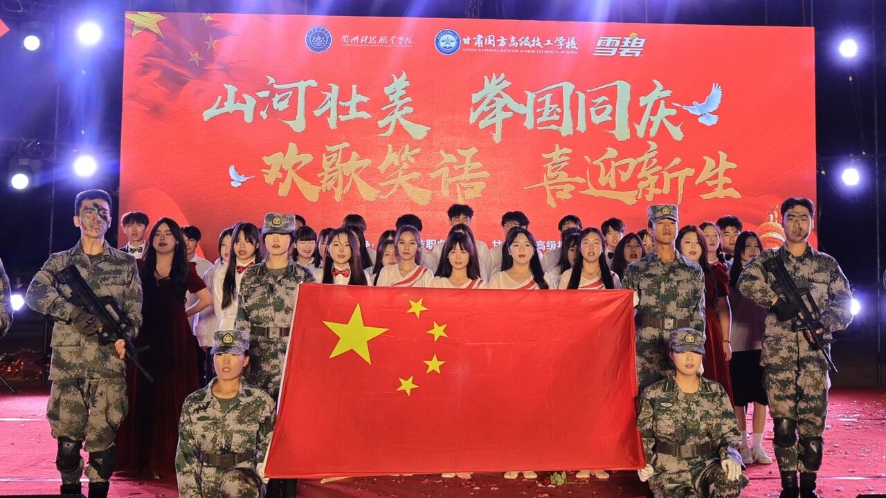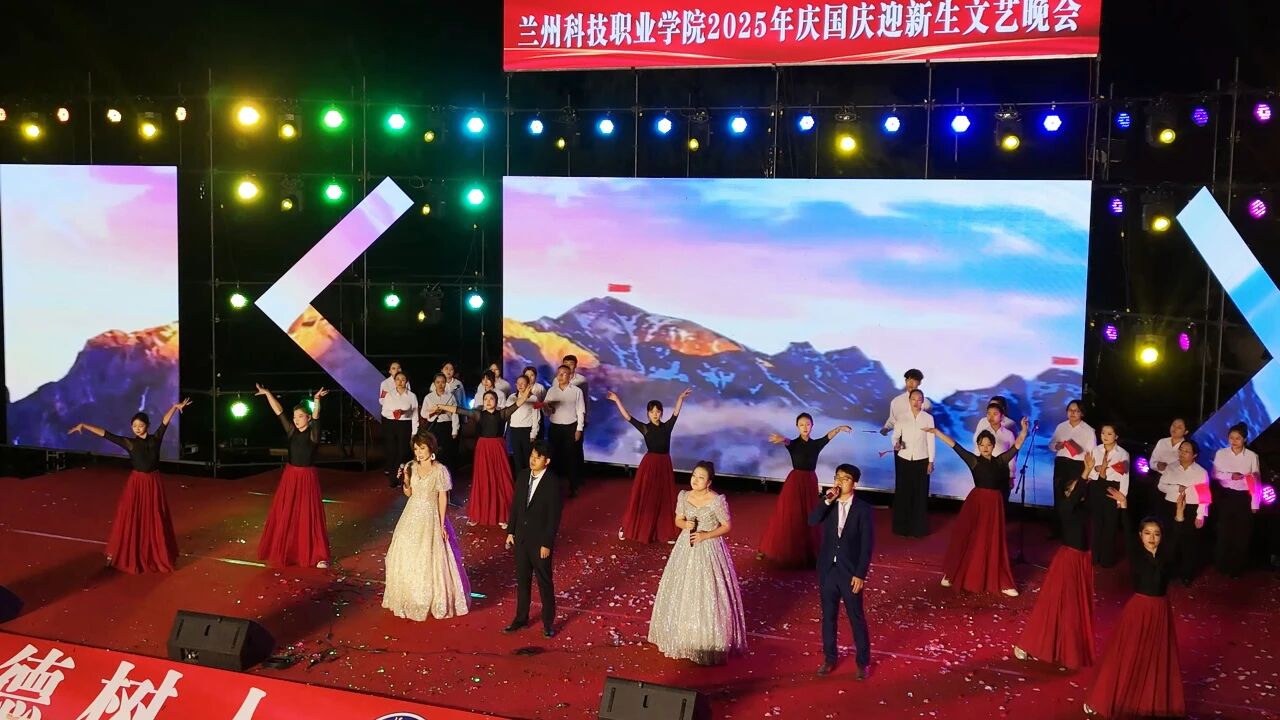 典礼结束后,以“庆国庆·迎新生”为主题的迎新文艺晚会在一阵激昂的旋律中盛大启幕。